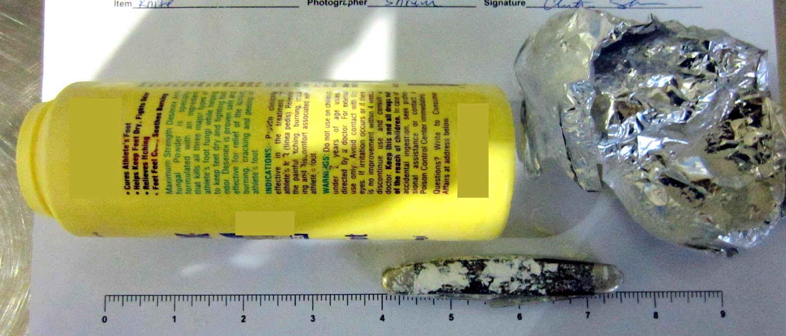 - A pocketknife was found wrapped in foil and concealed inside a plastic bottle of foot powder at Detroit (DTW).