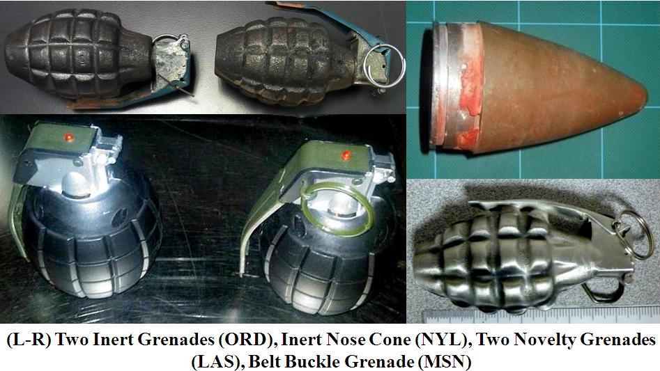- Four inert/novelty grenades were discovered this week -- two in carry-on baggage at Chicago O'Hare (ORD) and two more in checked baggage at Las Vegas (LAS).