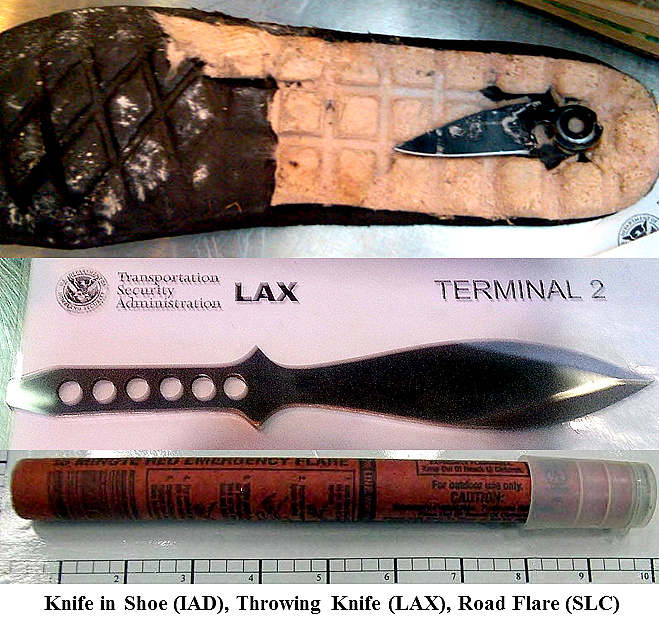 - A 3" knife was discovered concealed inside a shoe at Washington Dulles (IAD).
