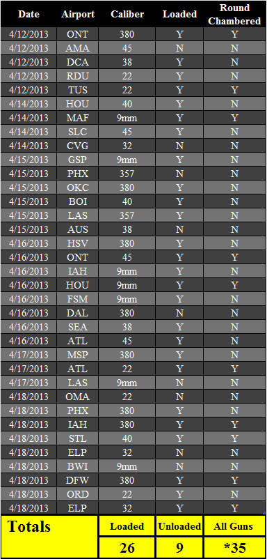 TSA Week in Review: 35 Firearms Discovered Last Week – 26 Loaded