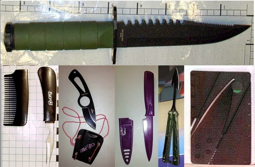 | Top to Bottom - Left to Right: Knives Discovered at SLC, ACY, BWI, BWI, EWR, FLL |