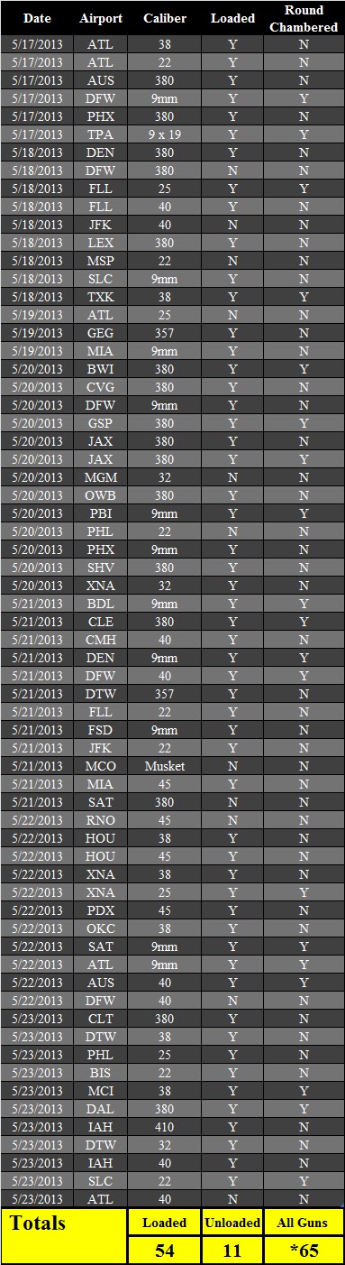 TSA Week in Review: Record 65 Firearms Discovered In Carry-on Bags (54 Loaded)