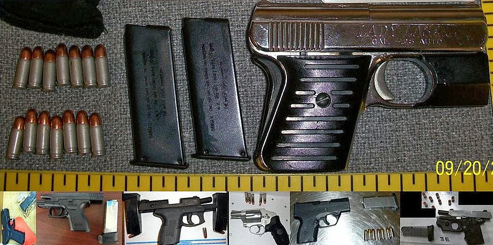 | (Top to Bottom - Left to Right) Firearms Discovered at JAX, ATL, DTW, HOU, IND, SJU, FLL |