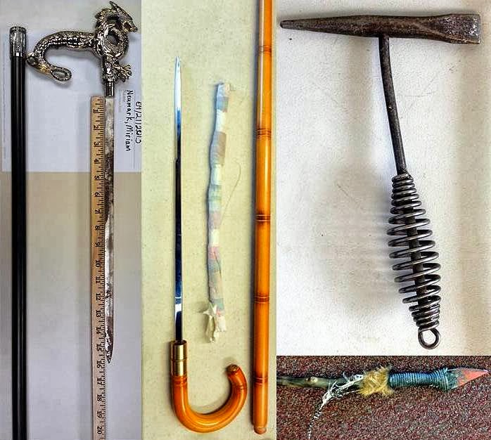 - A 16-inch sword was found concealed inside the cane of a traveler at Chicago O'Hare (ORD).