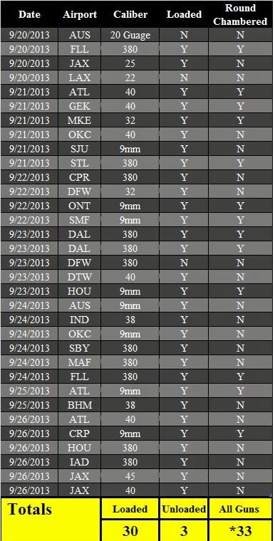 33 Firearms Discovered This Week – Of the 33 firearms, 30 were loaded and 13 had rounds chambered. See a complete list and more photos at the bottom of this post.