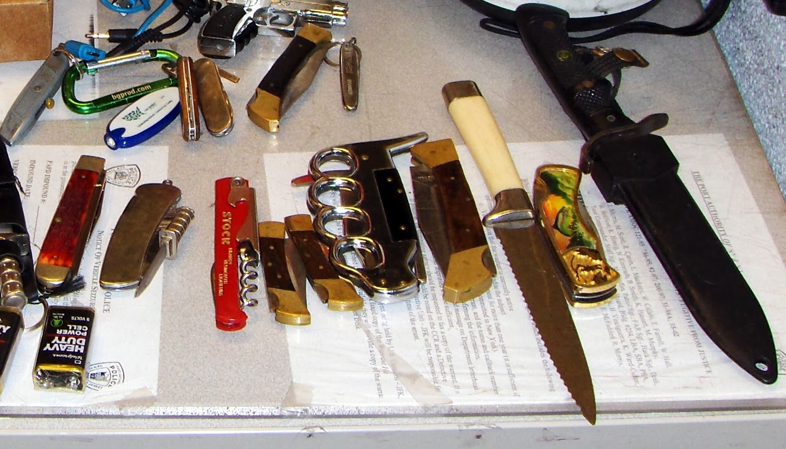 Miscellaneous Prohibited Items - In addition to all of the other prohibited items we find weekly, our officers also regularly find firearm components, realistic replica firearms, bb and pellet guns, Airsoft guns, brass knuckles, ammunition, batons, and a lot of sharp pointy things…