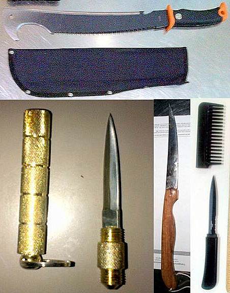 | (Top to Bottom - Left to Right) Machete (BWI), Kubaton w/ Blade (BNA), Kitchen Knife (AUS), Comb Knife (GRR) |