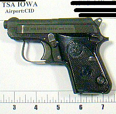 - A .25 caliber firearm loaded with 10 rounds was discovered hidden under the lining of a carry-on bag at Cedar Rapids (CID).