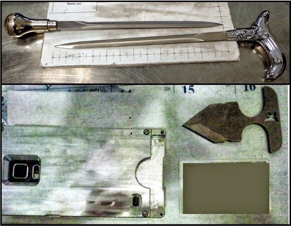 | Sword Canes Discovered at Memphis (MEM) - Knife in Phone Case Discovered at Tampa (TPA) |