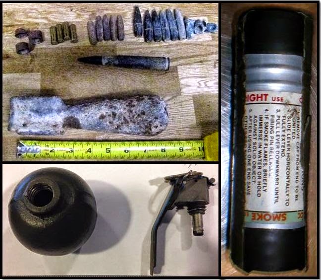 | Spent Mortar & Rounds & Live .50 Caliber Round (SAT), Inert Grenade (DTW), Smoke Grenade (TUS) |