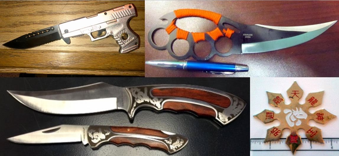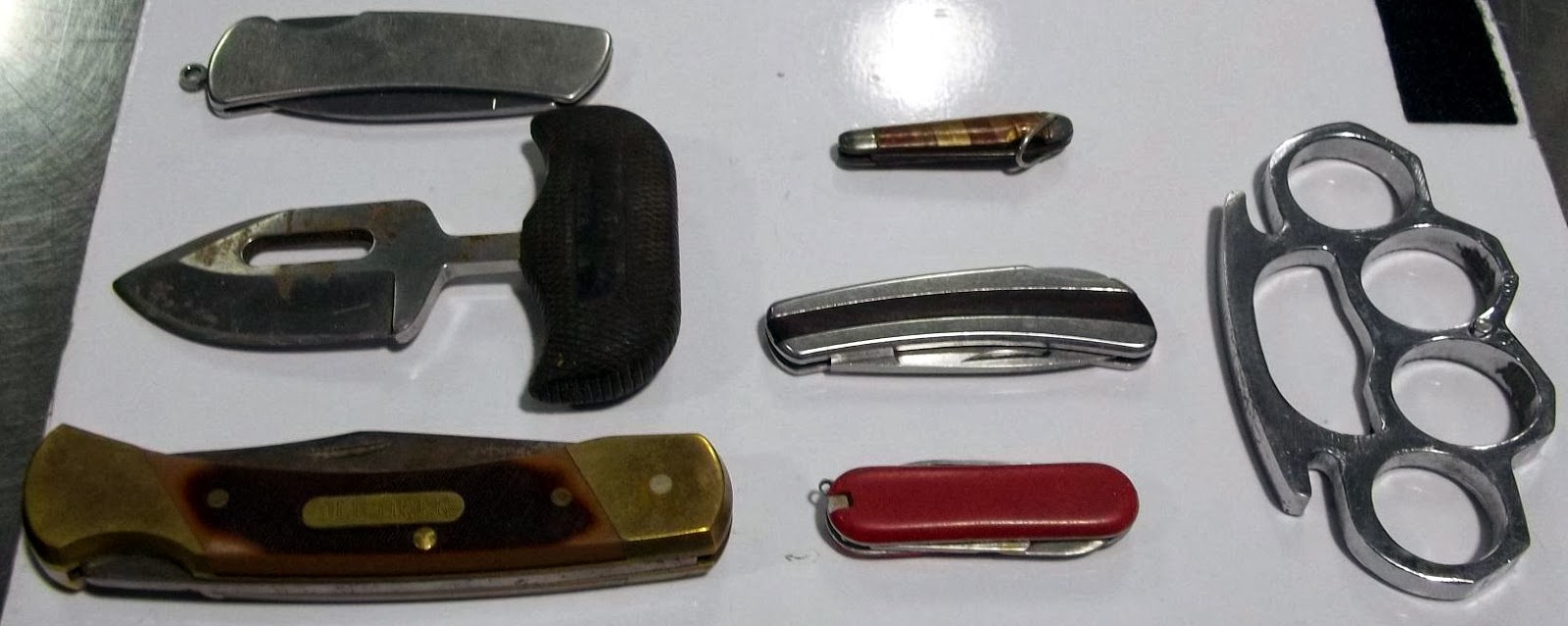 Miscellaneous Prohibited Items - In addition to all of the other prohibited items we find weekly, our officers also regularly find firearm components, realistic replica firearms, bb and pellet guns, Airsoft guns, brass knuckles, ammunition, batons, and a lot of sharp pointy things…