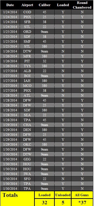 | Left to Right - Top to Bottom: Guns Discovered at MFR, SEA, TPA, HOU, SFB, SDF, MCO, TYS, CPR |