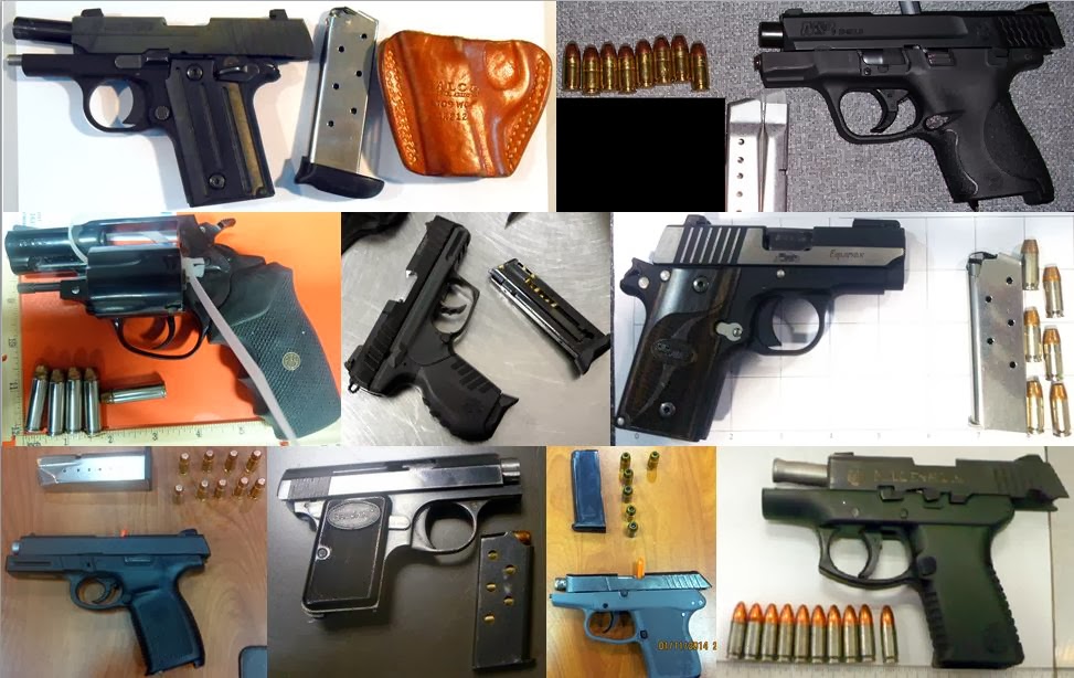 | Left to Right - Top to Bottom: Guns Discovered At HOU, JAX, TLH, SBN, ROC, ATL, AUS, ATL, FLL |