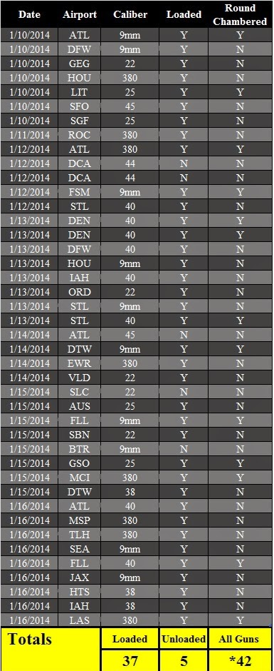 42 Firearms Discovered This Week – Of the 42 firearms, 37 were loaded and 13 had rounds chambered. See a complete list and more photos at the bottom of this post.