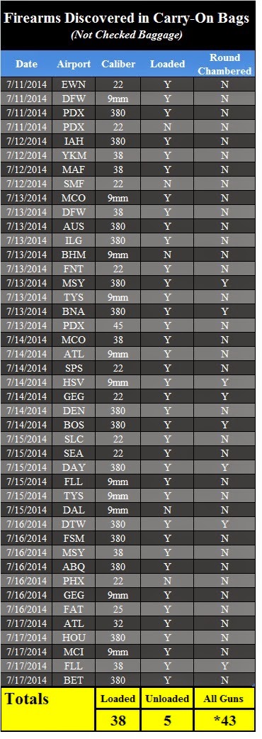 43 Firearms Discovered This Week – Of the 43 firearms, 38 were loaded and eight had rounds chambered.