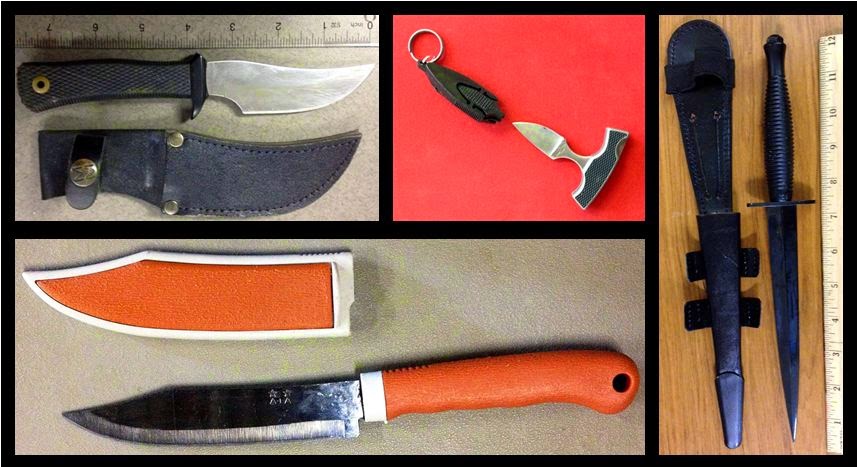 - 42 credit card knives were discovered this week. Eleven were discovered at Kansas City (MCI), eleven were discovered at Minneapolis (MSP), three were discovered at Tampa (TPA), two at Myrtle Beach (MYR), two at Cincinnati (CVG), two at St Louis (STL), and the remainder were discovered at Bismarck (BIS), Charleston (CHS), Chicago O'Hare (ORD), Duluth (DLH), Fargo (FAR), Joplin (JLN), Long Beach (LGB), Manchester (MHT), Saint Louis (STL), Shreveport (SHV) and Traverse City (TVC).