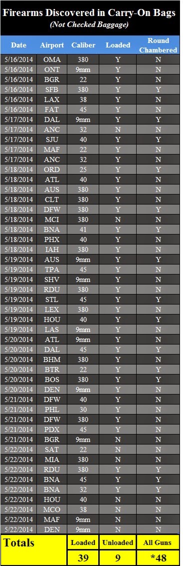 TSA Week in Review – 48 Firearms Discovered This Week In Carry-On Bags (39 Loaded)