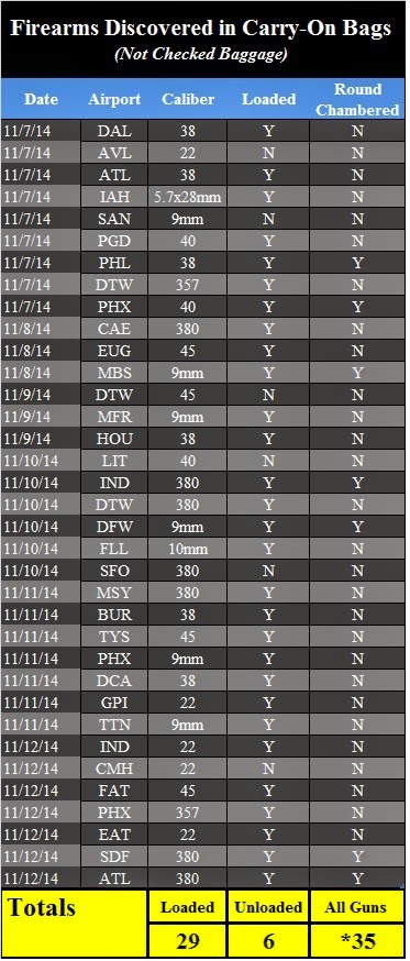 35 Firearms Discovered This Week – Of the 35 firearms, 29 were loaded and 7 had rounds chambered.