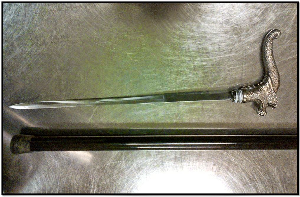 - A cane sword with a 10½-inch blade was discovered at Dayton (DAY).