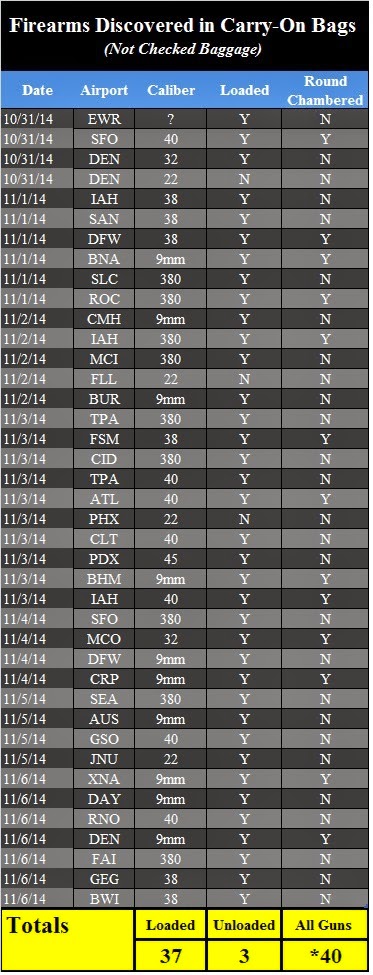 | (Clockwise from top left corner) Firearms discovered at: RNO, SAN, IAH & BNA |
