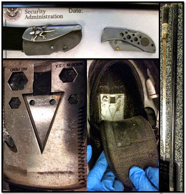 | Belt Buckle Knife (RAP), Bladed Survival Tool in Shoe (PHL), Sword Cane (PHX) |