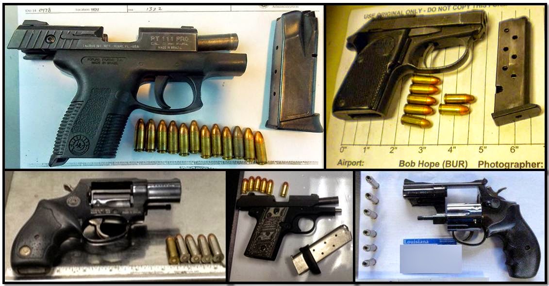 | Firearms discovered at (Clockwise from top left) HOU, BUR, MSY, RDU, SEA |