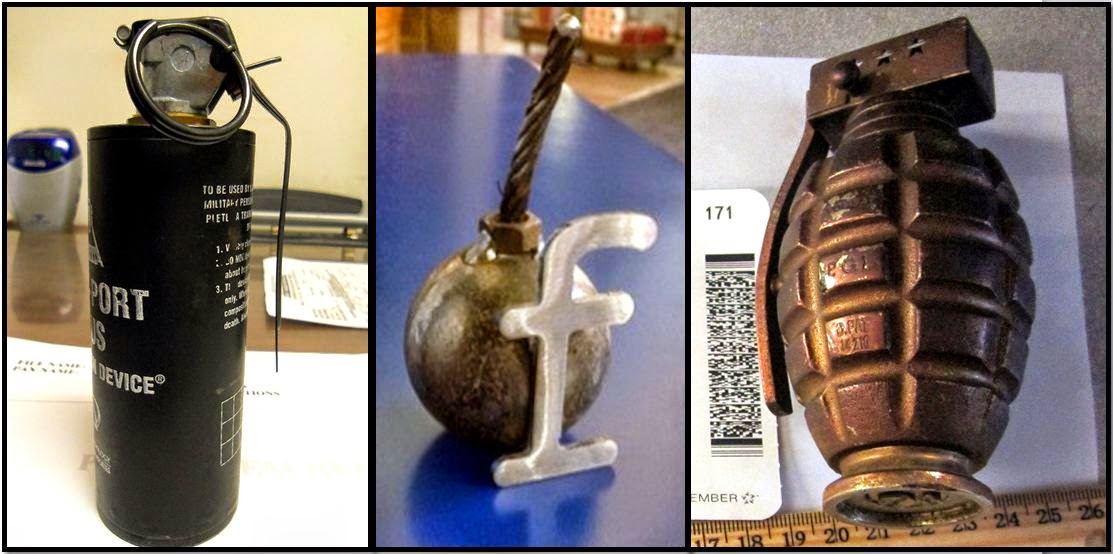 | (L-R) Live Stun Grenade (EVV), F Bomb (MKE), Replica Grenade (PIT) |