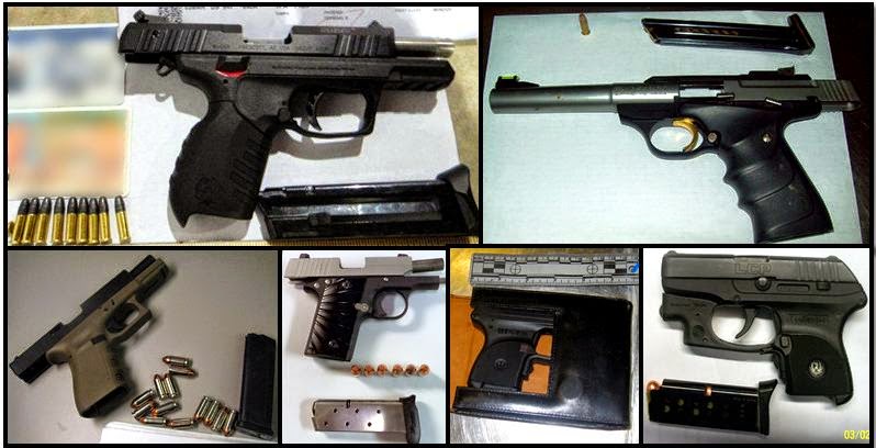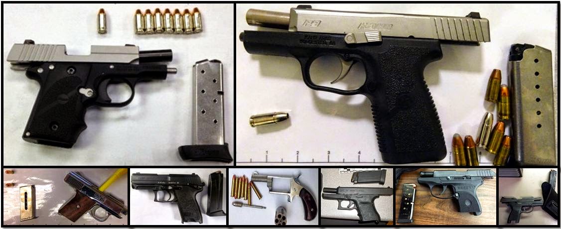 Clockwise from top left, firearms discovered in carry on bags at: TPA, MCI, TRI, IND, ATL & LYH |