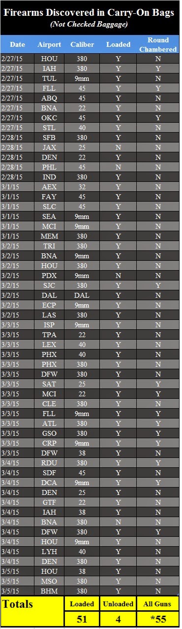 TSA officers have discovered firearms at security checkpoints in 41 of 50 states so far this year. |