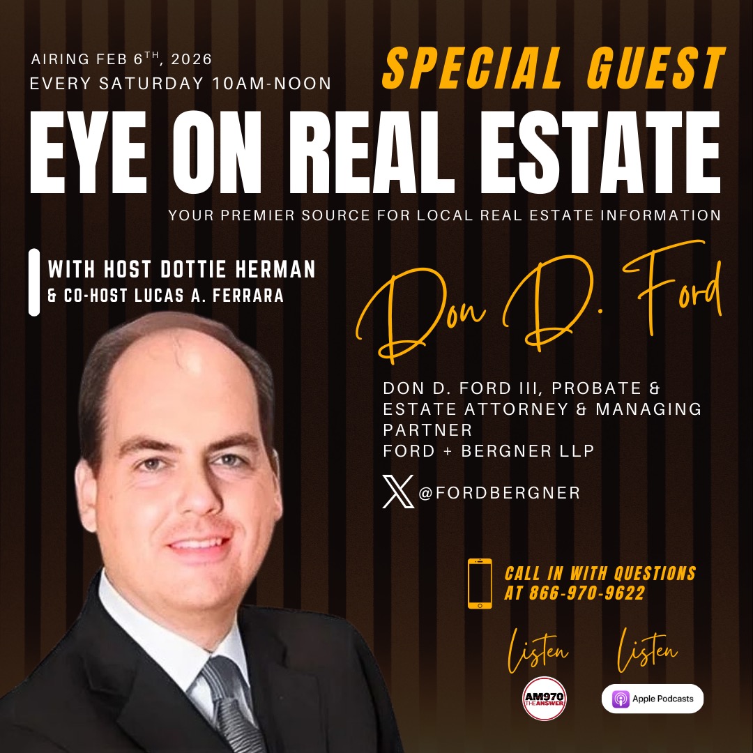 Saturday, February 21, we’re live with a brand‑new edition of EYE ON REAL ESTATE with Dottie Herman and me — two hours of straight talk, sharp insight, and the stories shaping how America buys, sells, inherits, and protects property.
