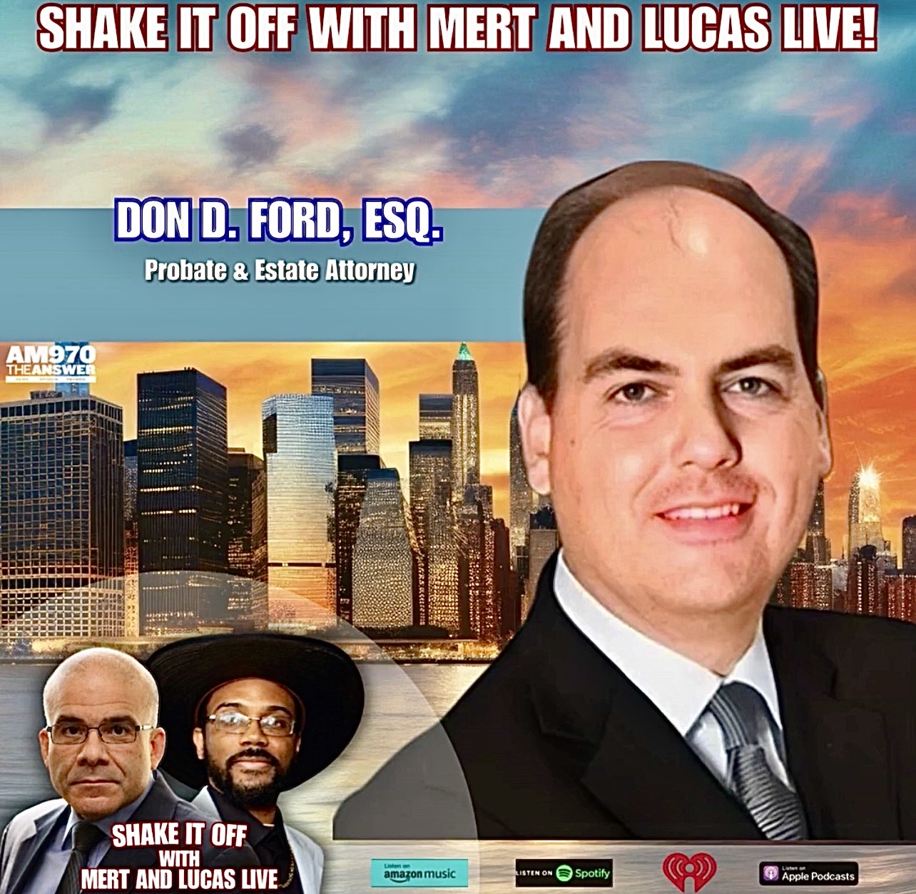 From 7–9 PM Eastern on AM970 Radio, SHAKE IT OFF WITH MERT & LUCAS, LIVE! brings together two guests whose work, in very different spheres, explores how we present ourselves, how we’re remembered, and how the choices we make shape the stories others carry forward. It’s an evening that moves from the power of expression to the legal architecture of legacy — revealing how identity, intention, and planning all shape the lives we lead.